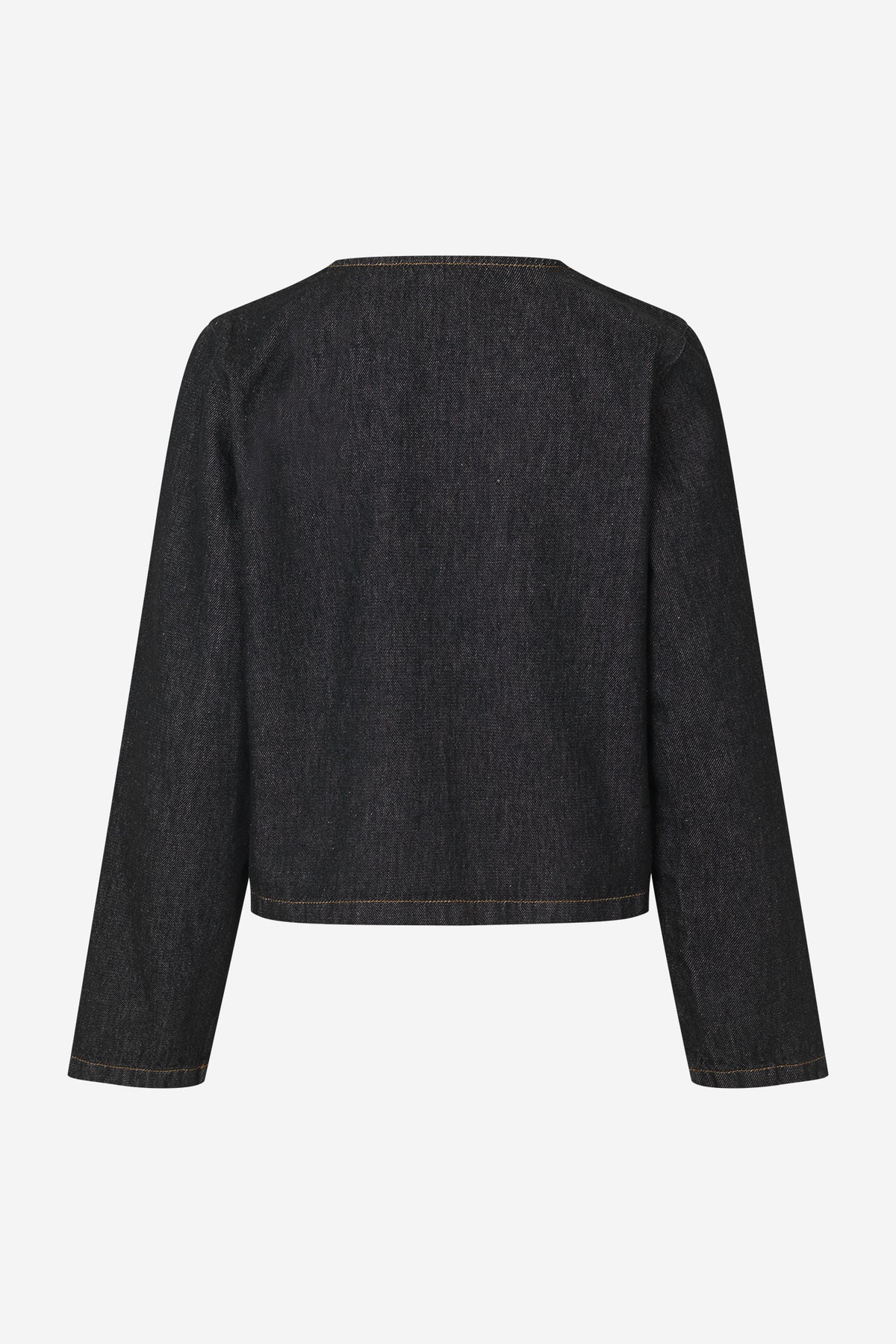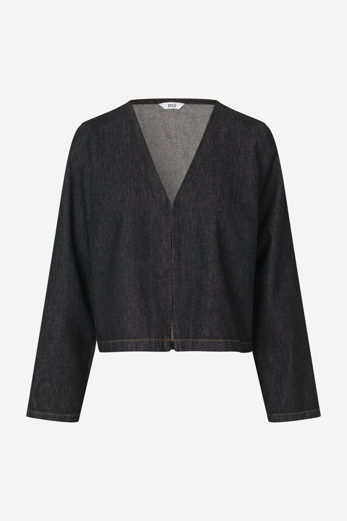 Langermet denimtopp fra danske Envii. Bomullsdenim med svarte sømmer og kontrastsøm. V-hals og skjult hektefeste foran. Rett, firkantet passform. Bruk den gjerne sammen med Enbrooklyn jeansen for en komplett look.