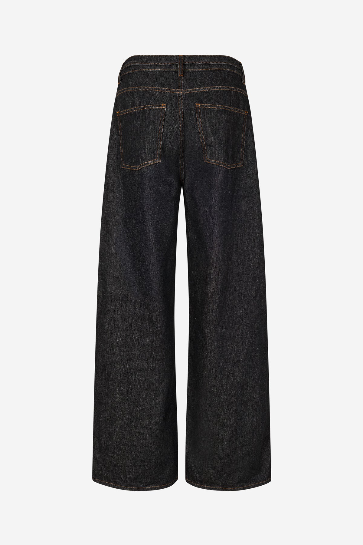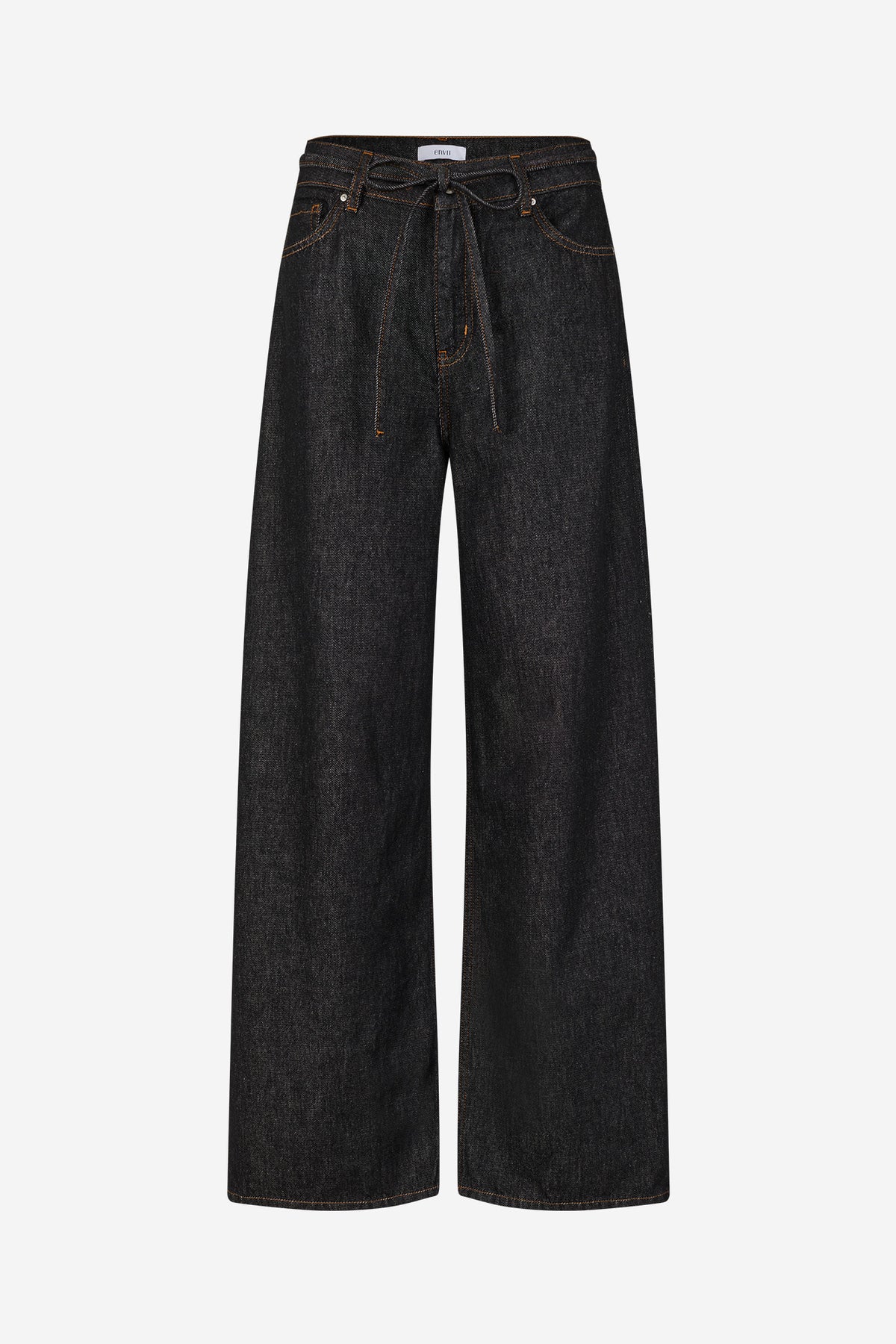 Ekstra vide jeans med belte fra danske Envii. Bomullsdenim med svarte sømmer og kontrastsøm. Skjult glidelås og knappelukking i linningen. Knytebelte i midjen. Femlommersmodell. Sølvfarget knapp og nagler med logo. Lav midje med ekstra vide ben. Bruk den gjerne sammen med Enbrooklyn Ls Top for en komlett look.