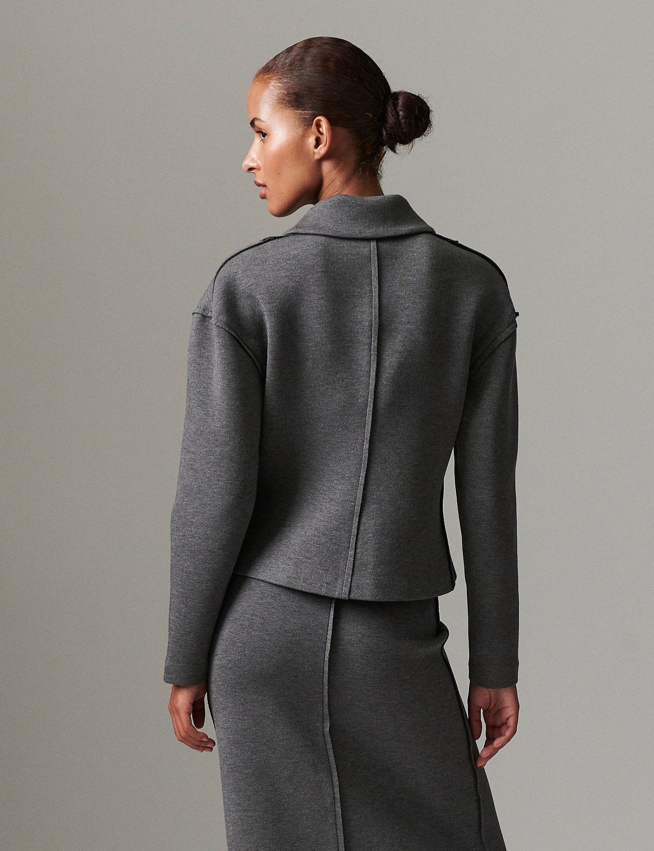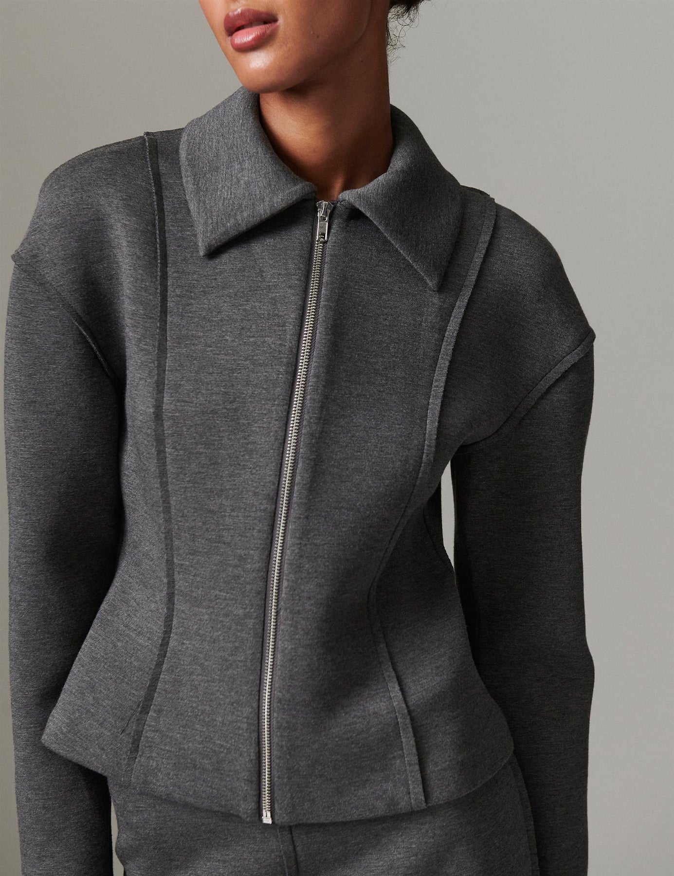 Stilig jakke fra danske Day Birger et Mikkelsen. Denne tøyelige jakken med scuba-tekstur har en kort krage, hevede sømmer og glidelåslukking foran. Jakken har normal passform.