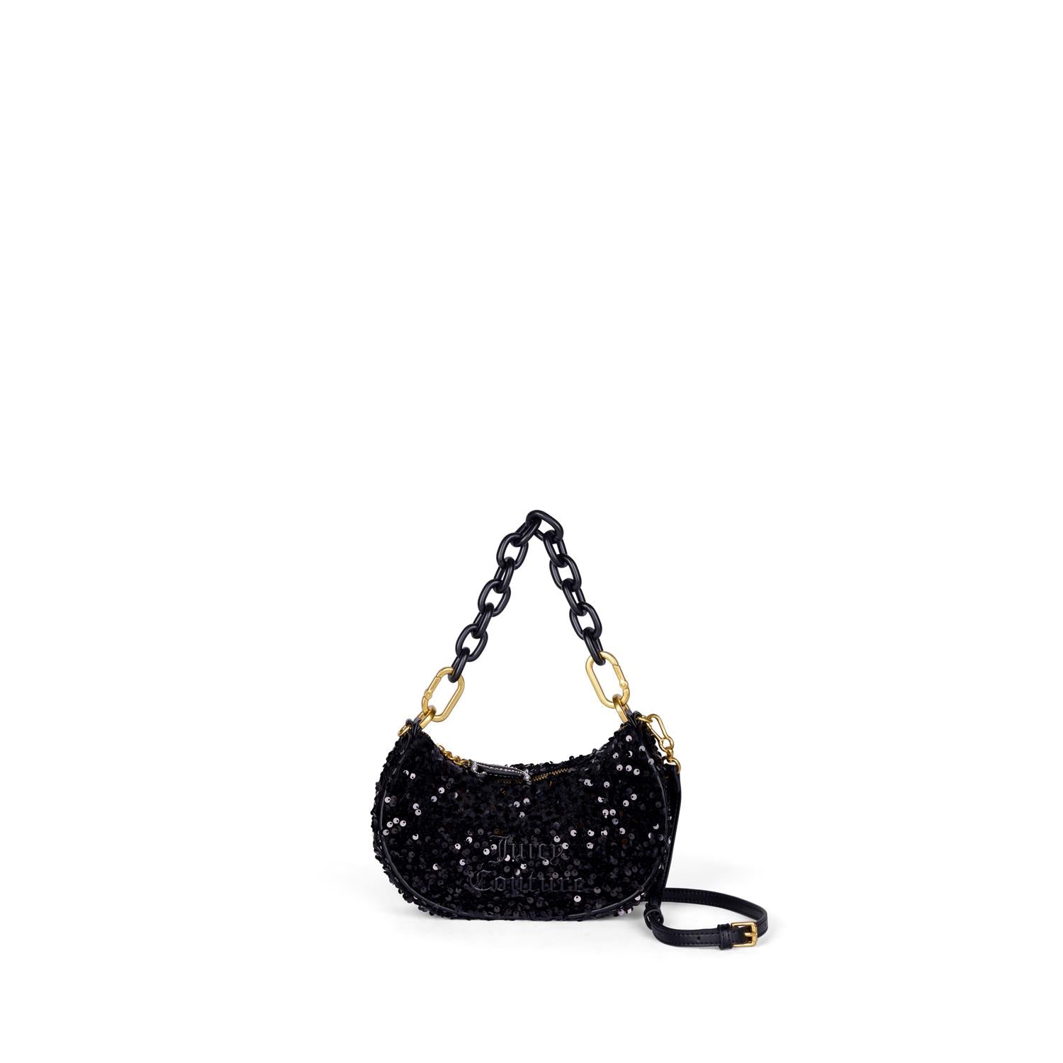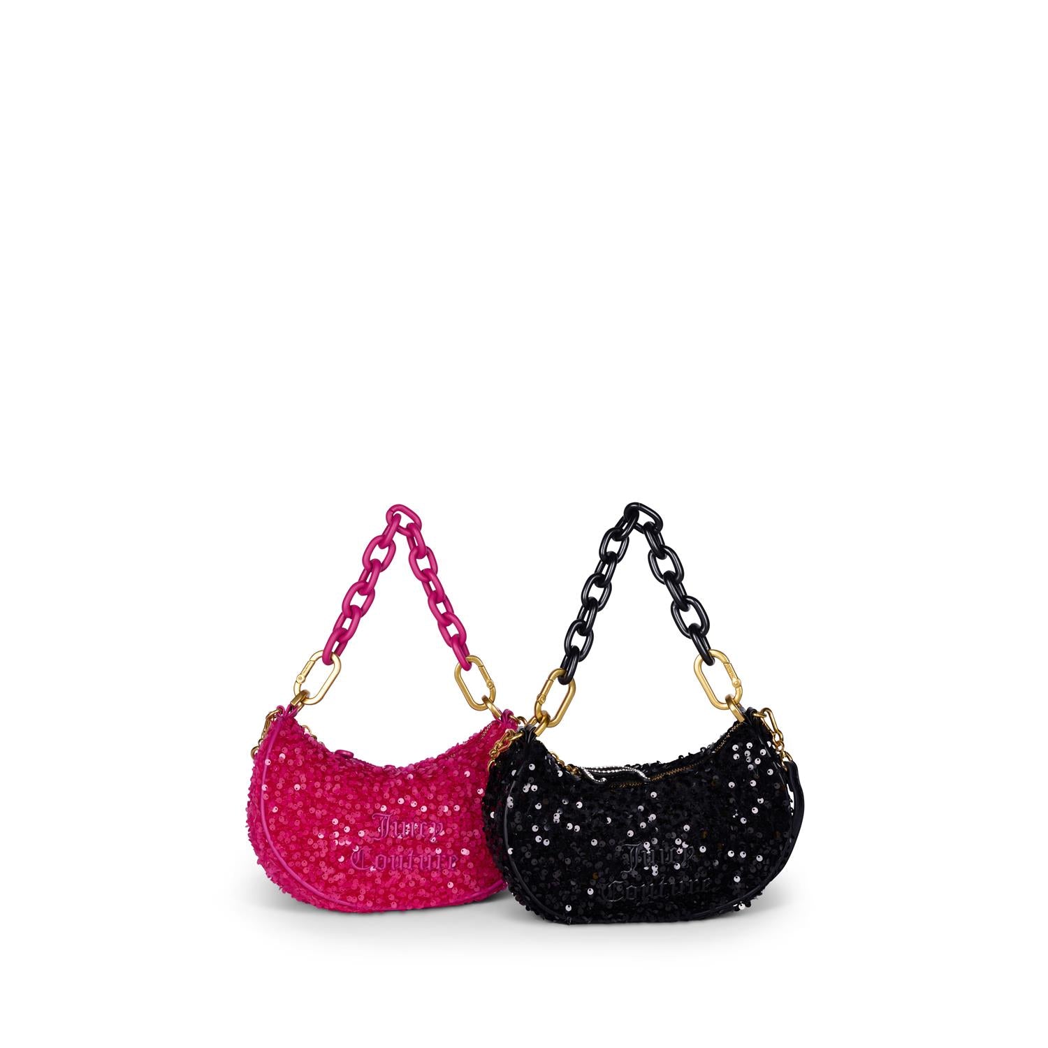 Gjør et glitrende inntrykk med denne statement-vesken fra Juicy Couture. Den ikoniske måneformen er dekket i glitrende paljetter som fanger lyset fra alle vinkler, og gir et luksuriøst og lekent uttrykk. Vesken har en solid kjedelenke i matchende farge, justerbar skulderrem og gullfargede detaljer som fremhever den glamorøse Juicy-stilen. Et glitrende must-have for deg som elsker en miks av Y2K-glam og moderne Juicy-attitude.