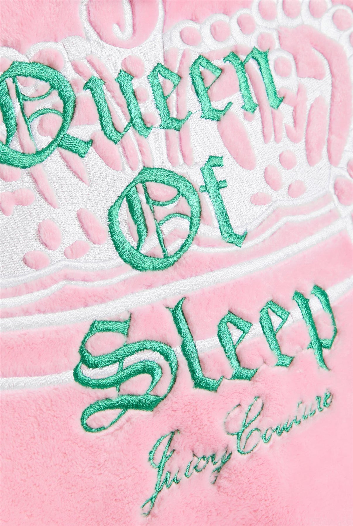 Supermyk morgenkåpe fra amerikanske Juicy Couture. Denne tilbyr luksuriøs komfort med et mykt stoff og en praktisk knyte i livet for en justerbar passform. Pyntet med en brodert krone på hetten, en signatur "JC'" på brystet og et "Queen of Sleep"-motiv med krone på ryggen, kombinerer denne kåpen kongelig stil med koselig praktisk bruk, perfekt for avslappende stunder hjemme.
