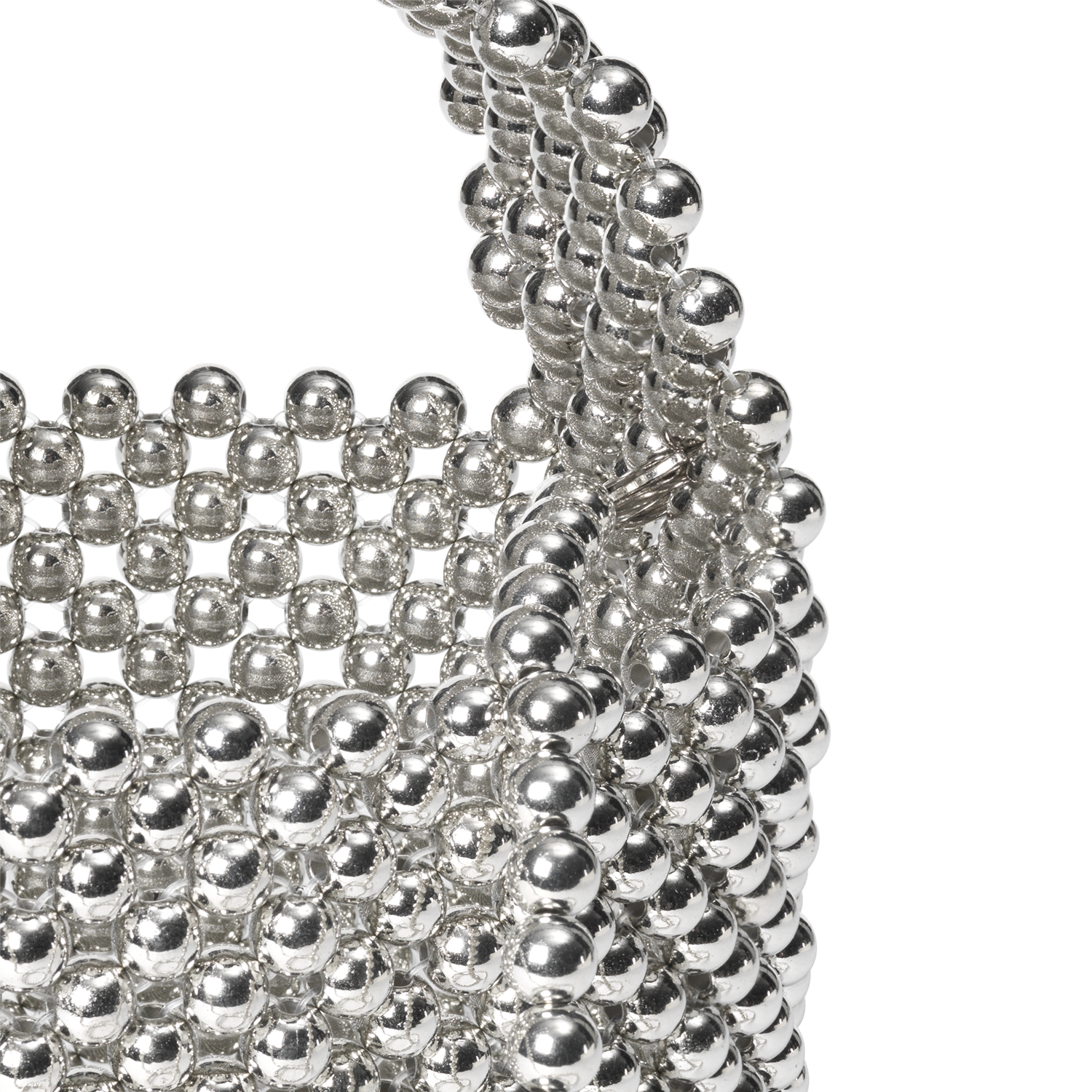 Råkul veske fra danske DAY ET. Med sin skulpturelle form og blanke perler i metallfinish er denne lille håndvesken et blikkfang for både hverdag og fest. Den er lett å bære i hånden, og den avtakbare crossbody-remmen gjør det enkelt å variere stilen, uansett om du vil ha et avslappet eller elegant utseende.