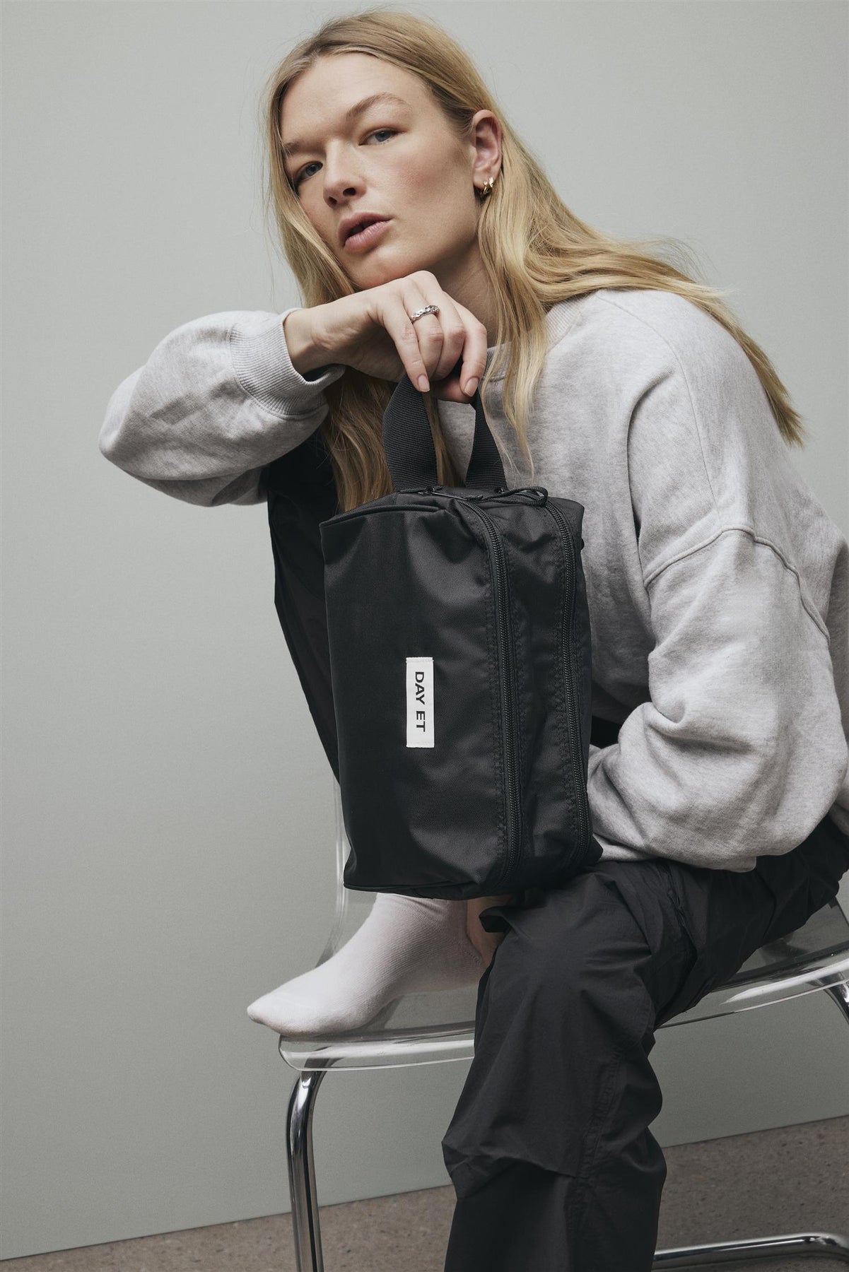 Day Gweneth RE-S Washbag L er perfekt når du trenger å ta med deg skjønnhets- og kosmetikkproduktet ditt. Den er også laget av 100 % resirkulert materiale i hovedstoffet og er designet med to hovedrom der det kan passe produkter i alle størrelser. Den har også flere lommer, hvor du kan oppbevare dine mindre gjenstander. Bruk den hjemme eller når du er på farten!