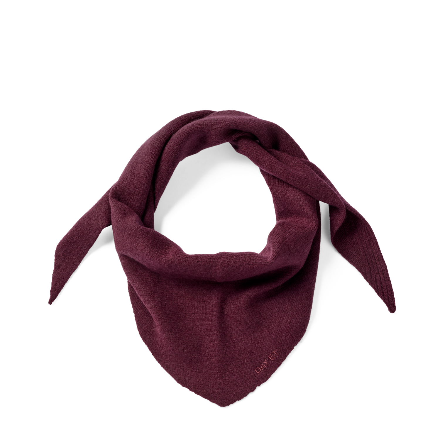 Skjerf fra danske DAY ET. Strikket i varm og myk merinoull er dette et trekantet skjerf, et praktisk valg for kalde dager. Ribbedetaljene langs kanten gir et enkelt og elegant uttrykk, og formen gjør det lett å style både rundt halsen eller over skuldrene. Et funksjonelt tilbehør til hverdagen.