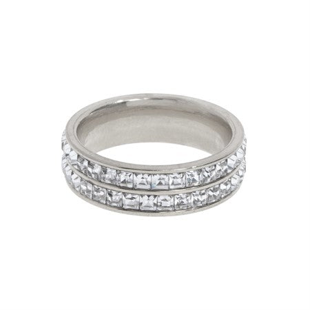 Angelica Double Lined Crystal Pavé Ring Stainles Silver