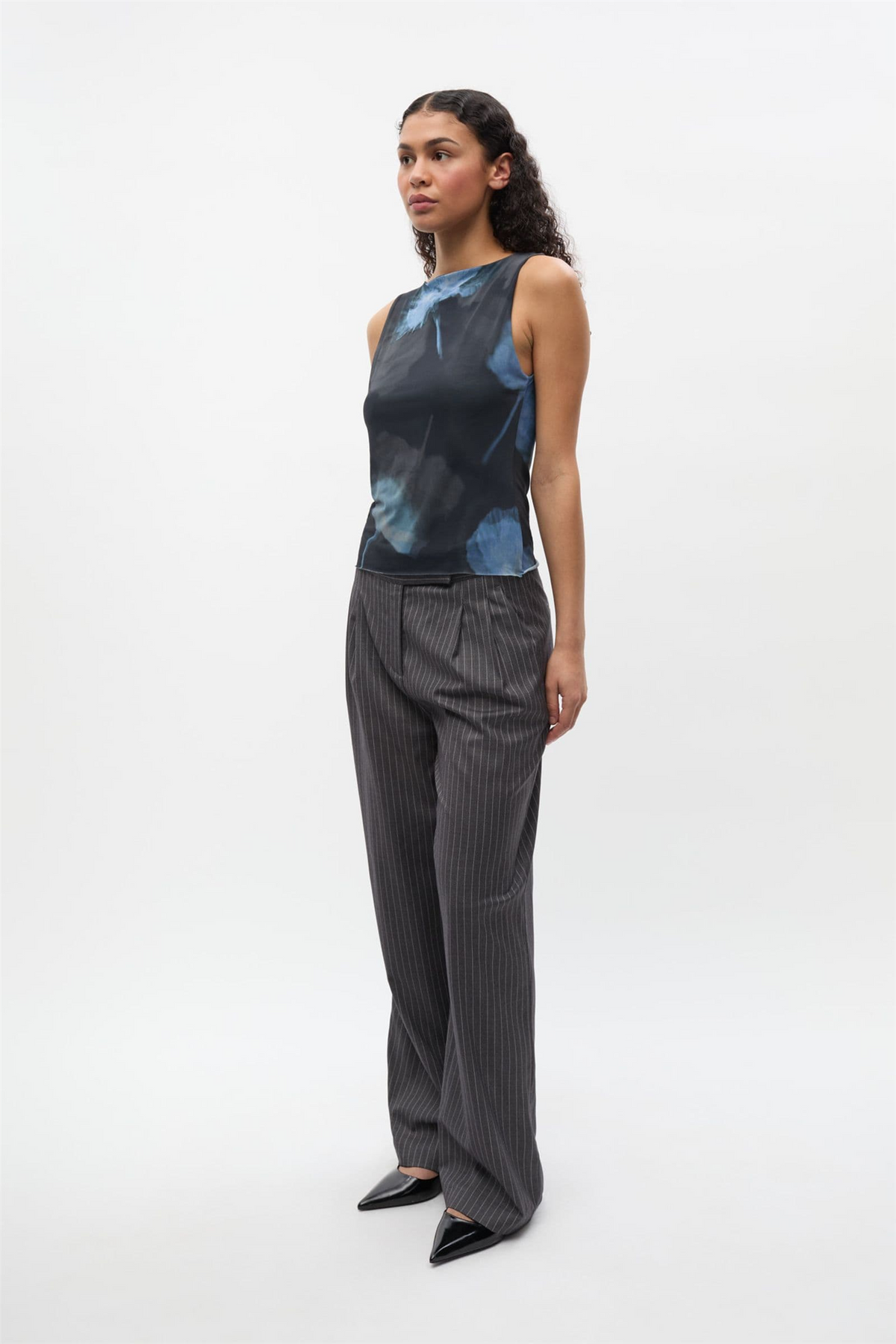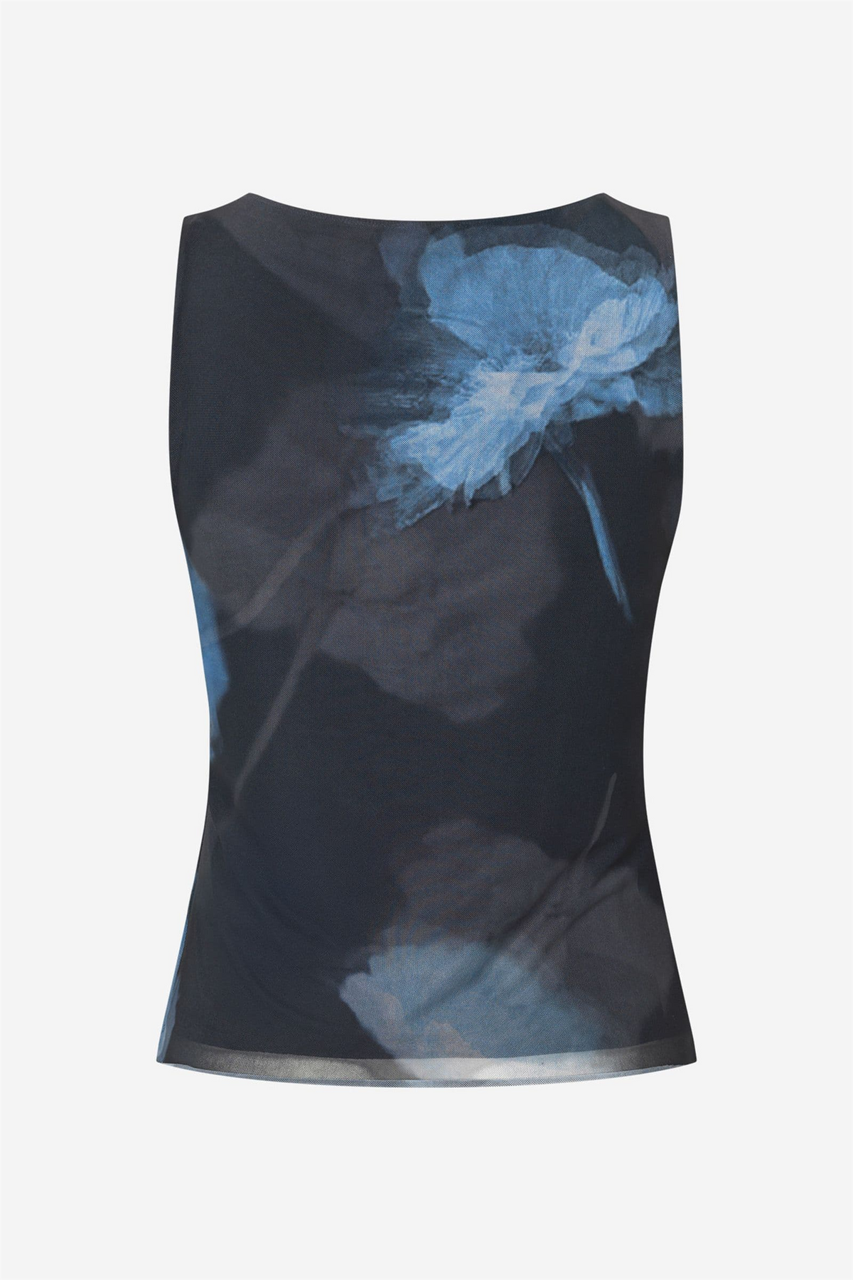 Ermeløs nettingtopp fra danske Envii. Transparent elastisk netting med heldekkende mønster. Båthals og lange ermer. Uklippet nederkant. Fullt foret. Slim fit.