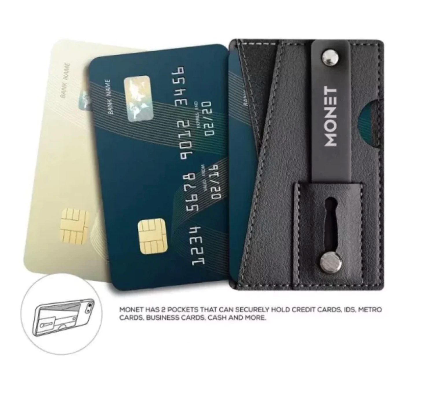 Dette er en smart kortholder med plass til flere kort, som du enkelt fester på mobiltelefonen eller dekslet ditt. Passer til alle deksler og telefoner, og er like fresh som den er praktisk. Den har en funksjonell hank som gjør at dekslet ligger godt i hånden uten at lillefingeren overbelastes. Den smarte hanken fungerer også som en støtte for telefonen din, så den kan stå oppreist når du vil se serier eller lese nyheter på telefonen din. Det aller beste er at den passer til alle telefoner, slik at du kan velge akkurat den typen du liker best. Kortholderen har en stripe med lim på baksiden som gjør at den sitter godt.