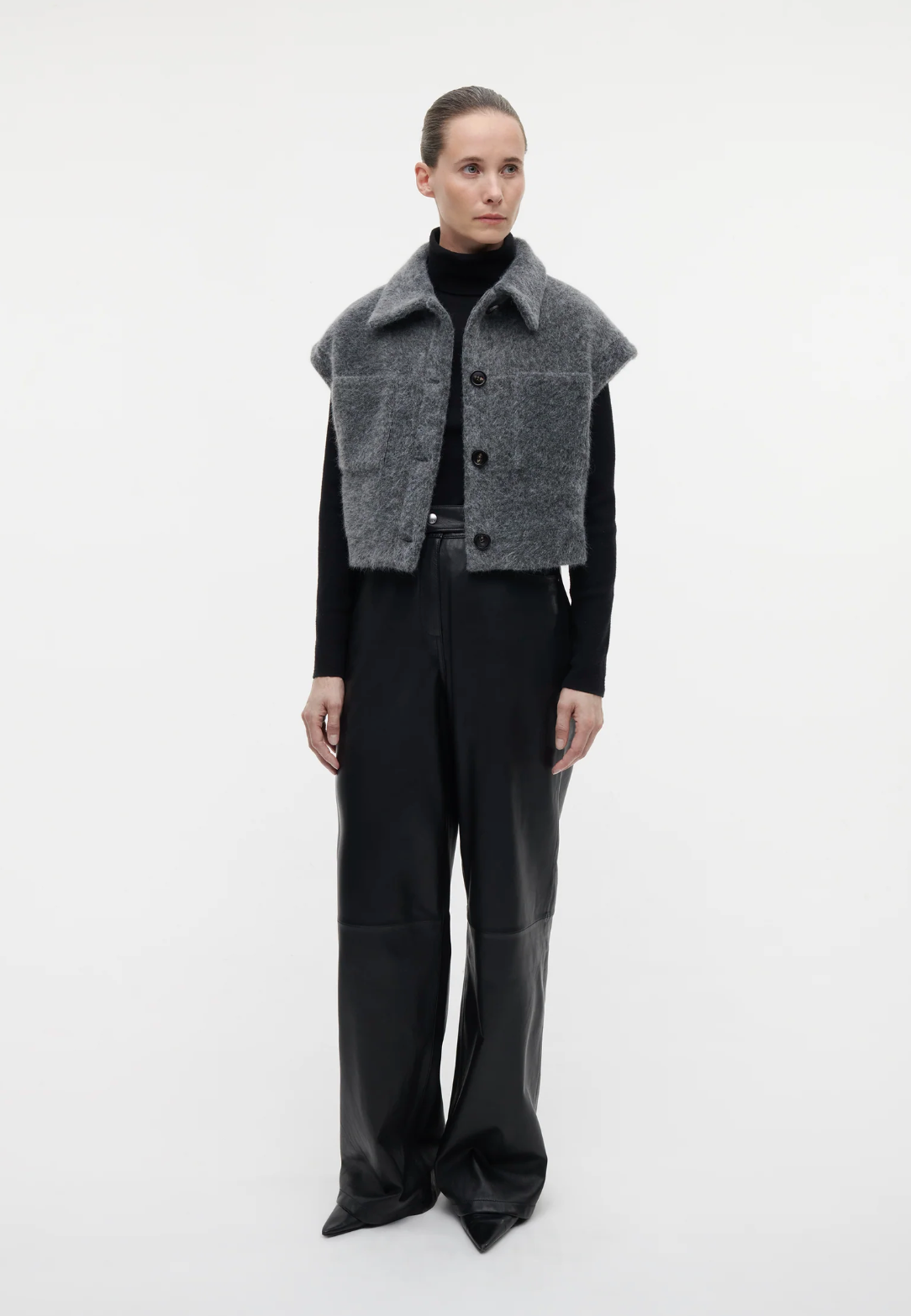 Pakk deg inn i mykhet med PLUME Faux Mohair-vesten fra nederlandske STUDIO AR. Laget av myk imitert mohair, tilbyr PLUME Faux Mohair-vesten et ermeløst, lett lag som er perfekt for å tilføre tekstur og varme til ethvert antrekk.