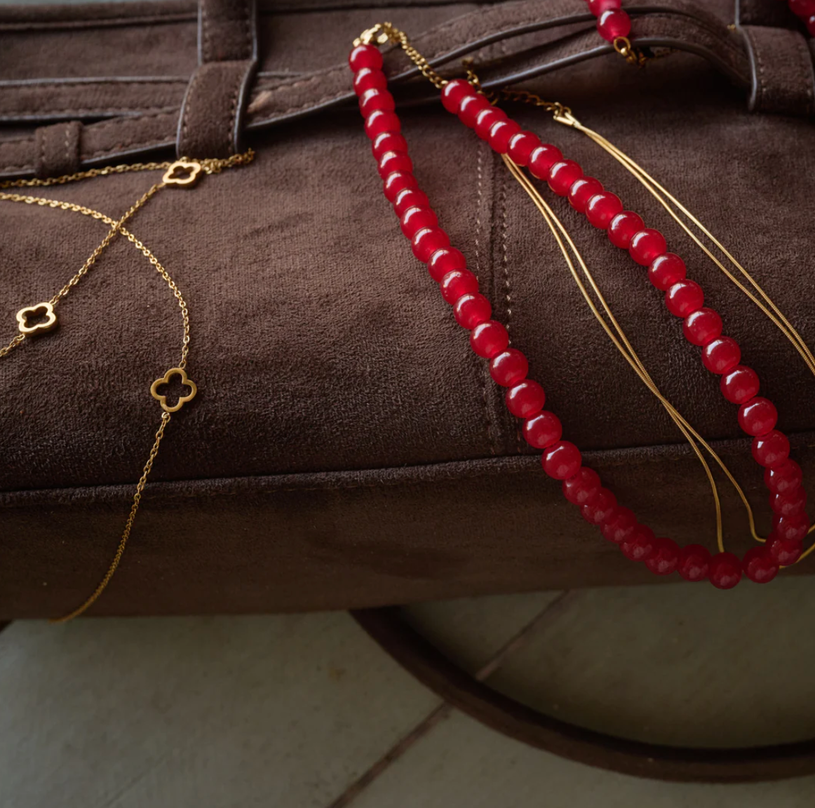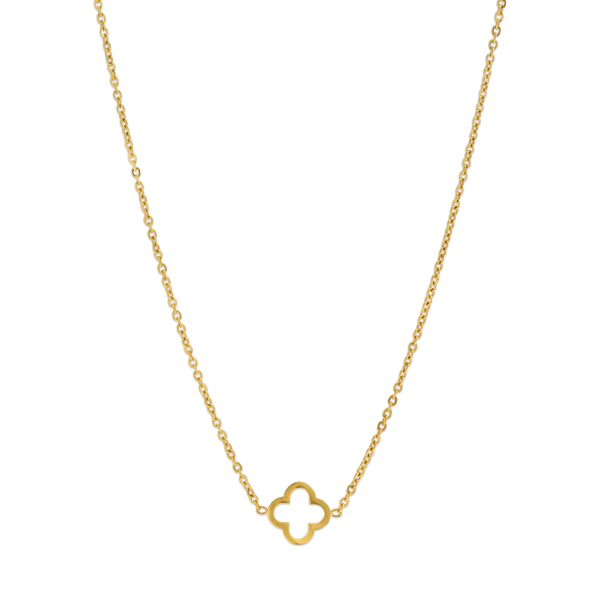 Et symbol på lykke og sjarm, dette kløverhalskjedet. Dette delikate halskjedet i rustfritt stål har et subtilt kløveranheng, er vannavstøtende og motstandsdyktig mot misfarging for daglig bruk.