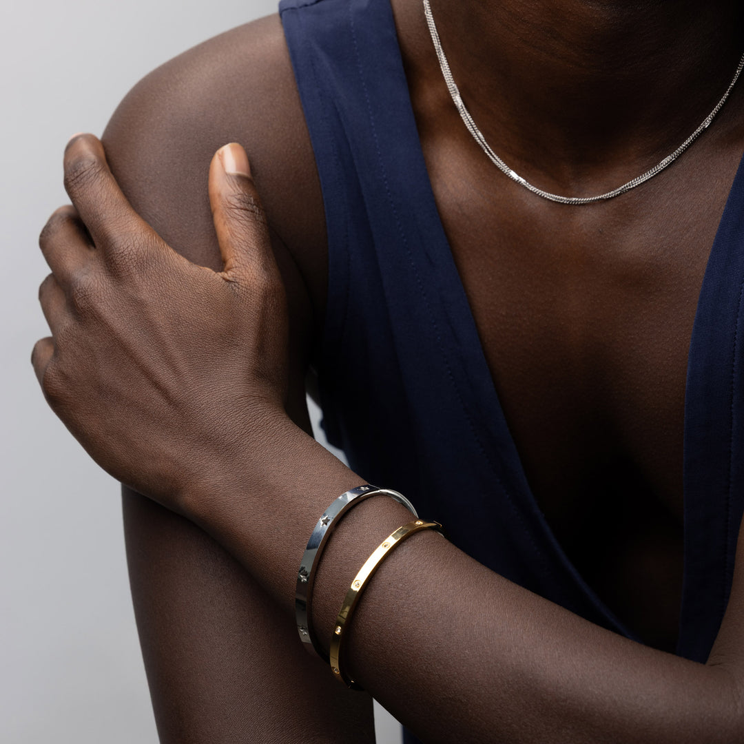 Lekkert armbånd fra timi of Sweden. Dette armbåndet er den perfekte blandingen av eleganse og hverdagslig allsidighet. Enten du er på vei til brunsj eller en spesiell anledning, tilfører Fiona akkurat den rette mengden glans.