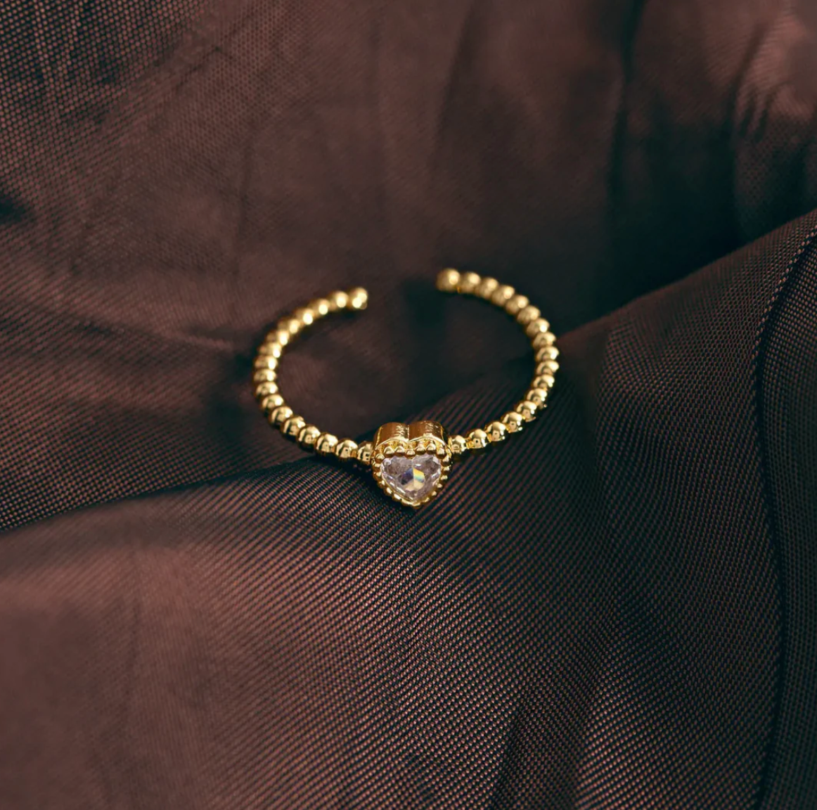 Kjempefin ring fra timi of Sweden. Vi elsker denne ringen, med det søteste boblebåndet og en hjerteformet krystall som hovedattraksjon.